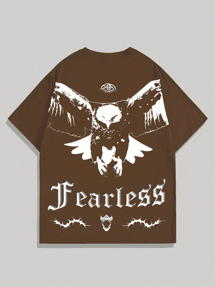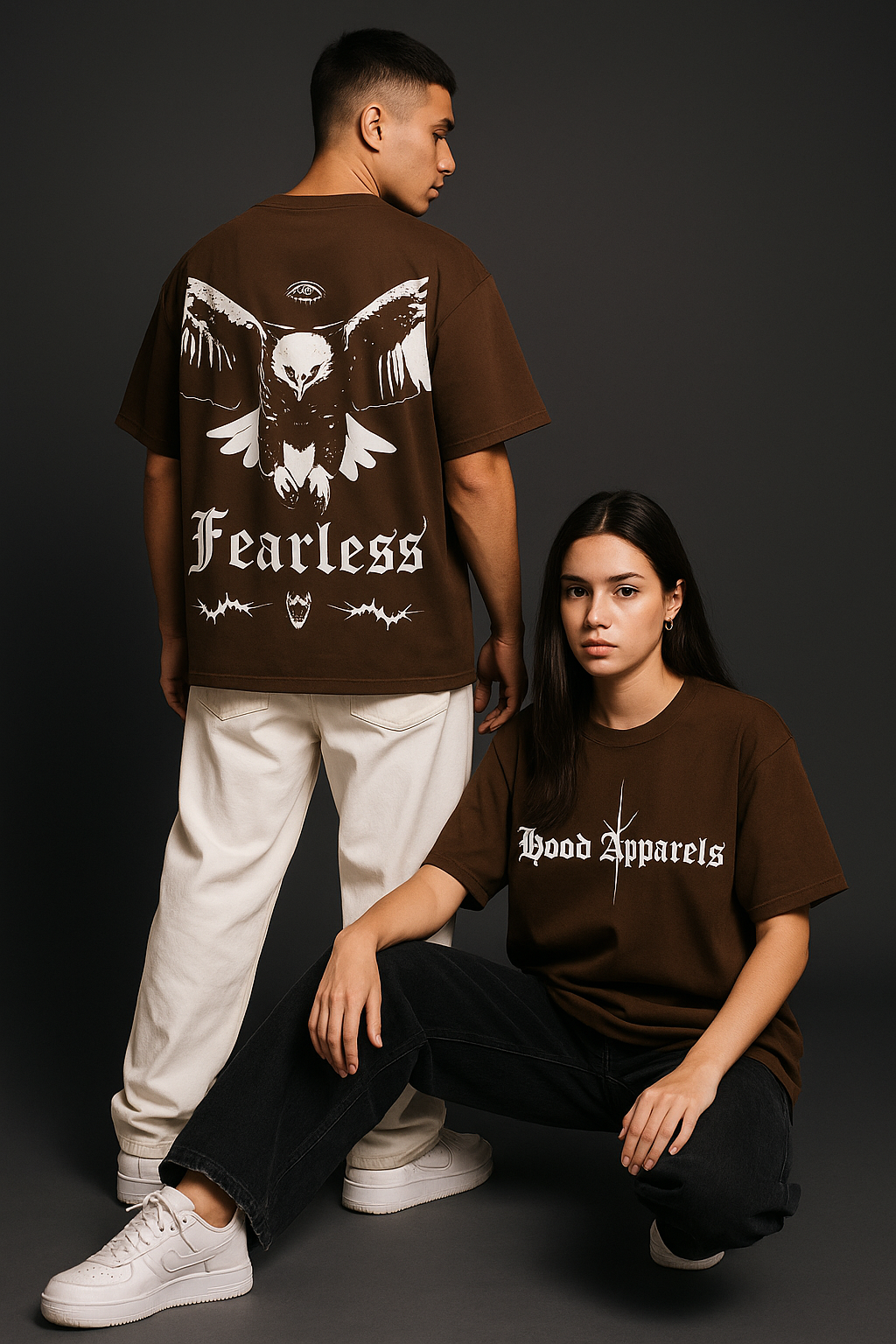 The back features a cool eagle design with “Fearless” text, symbolizing strength and confidence, while the front has our classic Hood Apparels logo for a clean and stylish finish.