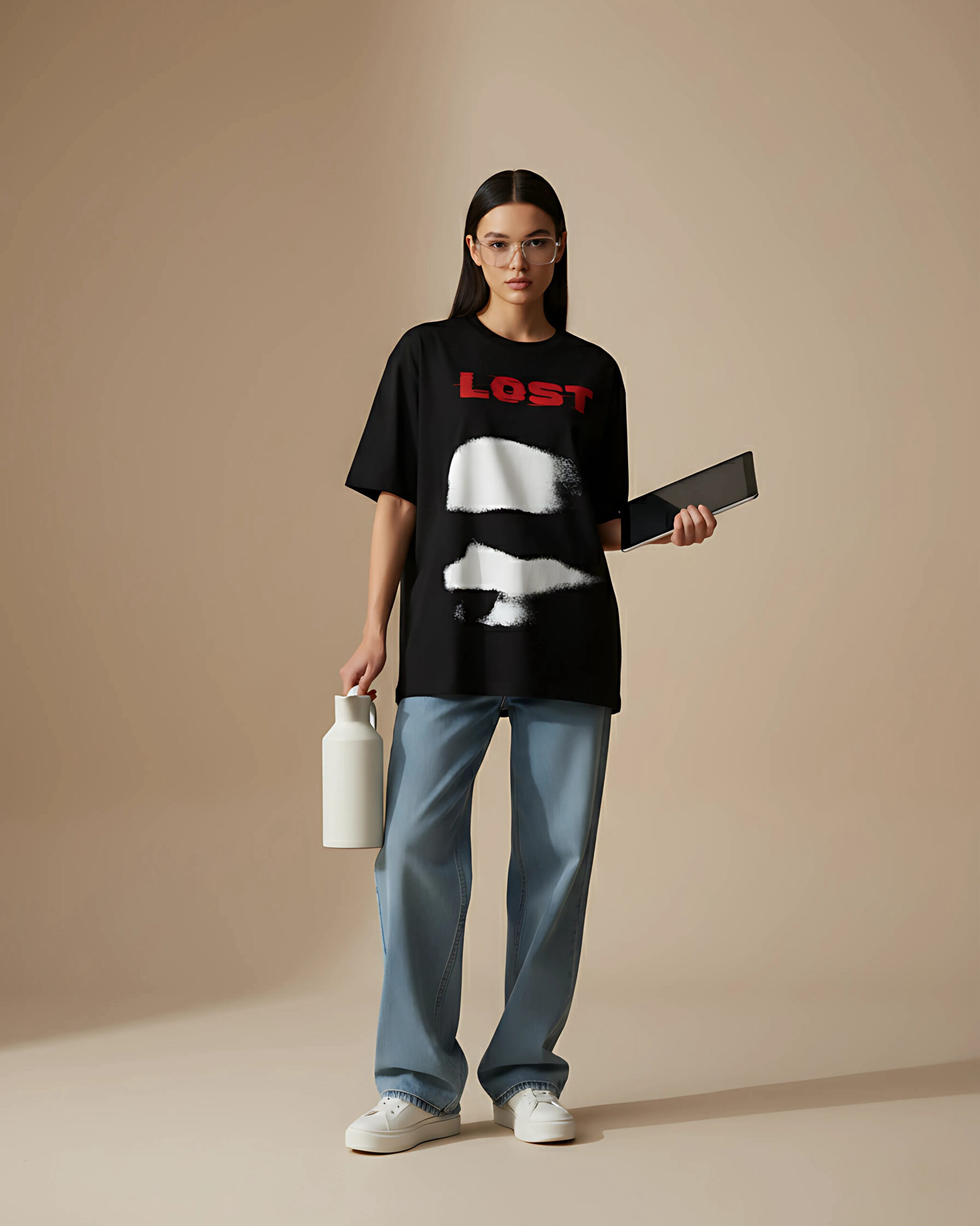 Step into the underground vibe with the LOST Graphic Tee, designed for those who embrace raw expression and bold streetwear energy. Featuring a distressed red LOST print on the chest and an abstract, glitch-style face graphic, this tee embodies mystery, rebellion, and individuality.
