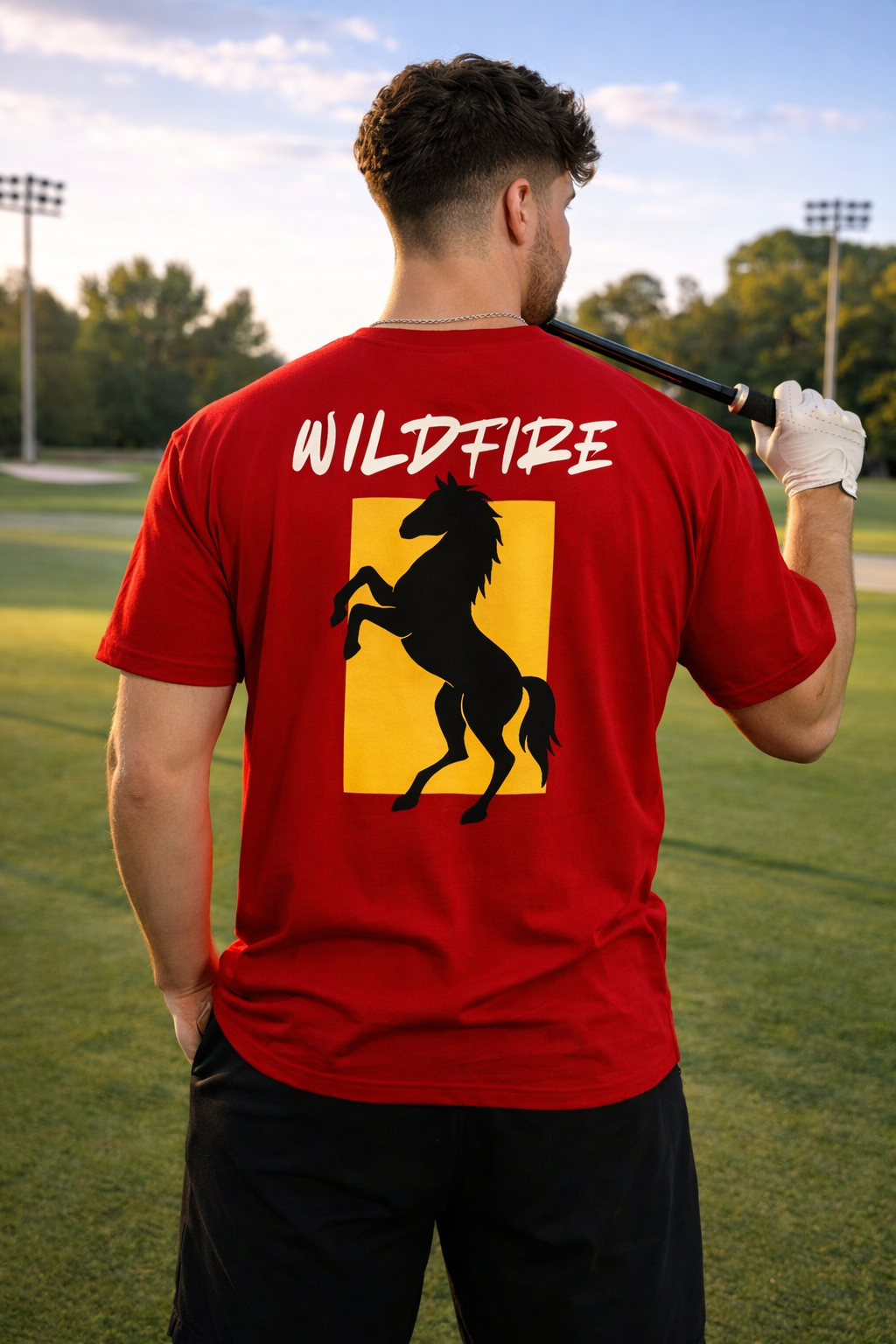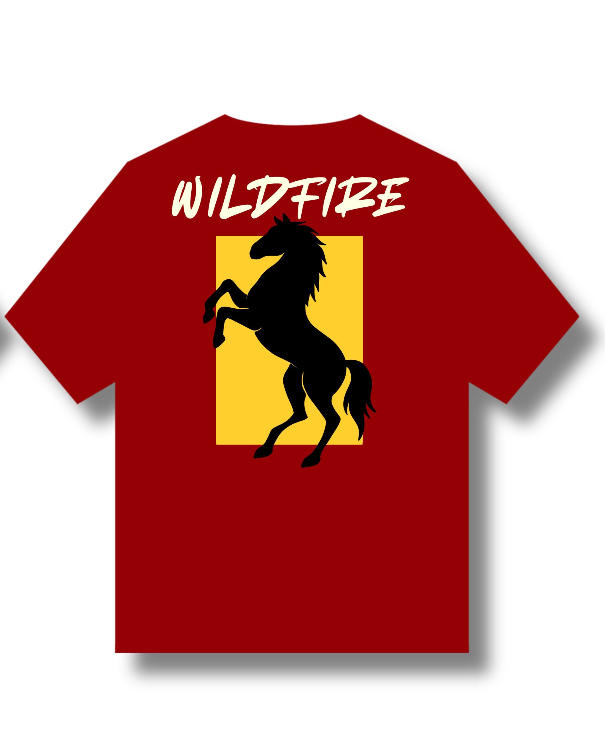 The WILDFIRE Oversized Red T-Shirt is made for those who move with passion and confidence. Featuring a striking black horse silhouette against a bold yellow backdrop, paired with the powerful “WILDFIRE” text, this design represents strength, freedom, and unstoppable drive.